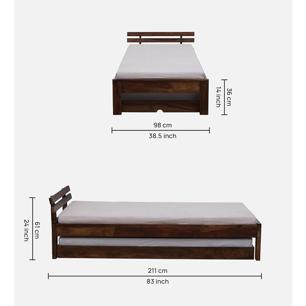 Ferrovilla Luis Trundle Single Sheesham Wood Bed for Bedroom with 2 Years Warranty